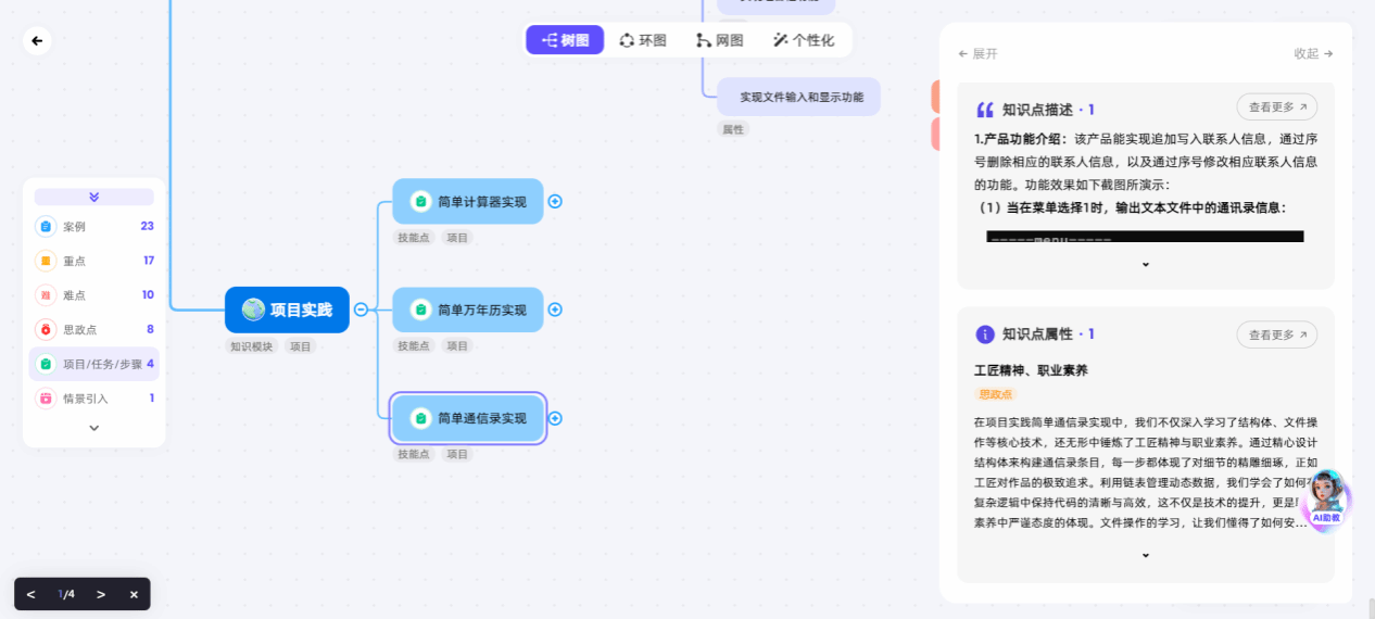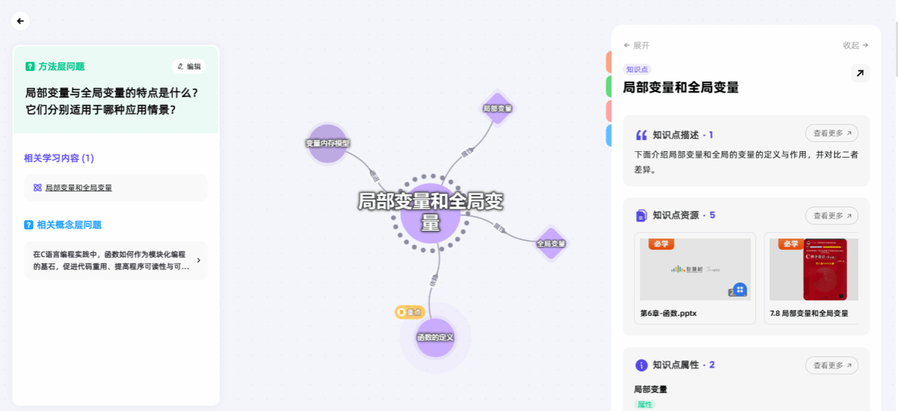 系统关联知识点,每个知识点包含重点、难点、案例、思政点、应用场景等属性标签,使得学生能够在理解概念的同时,通过多样化的学习材料加深记忆。此外,每个知识点搭配相应的习题资源,可以根据知识点精准出题、巩固训练。