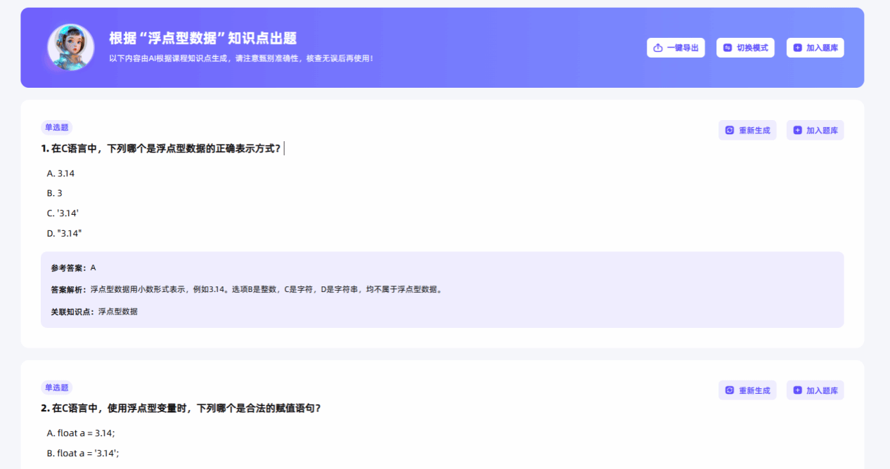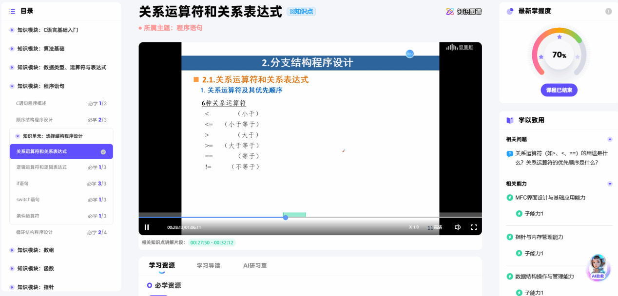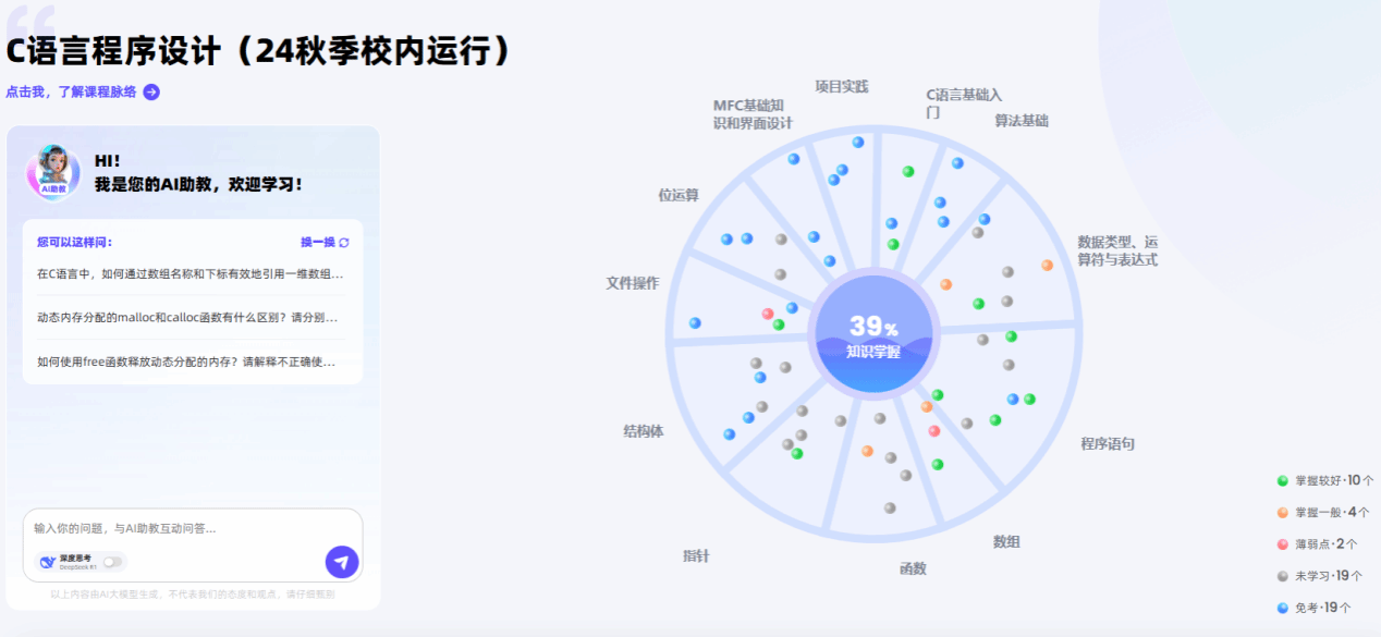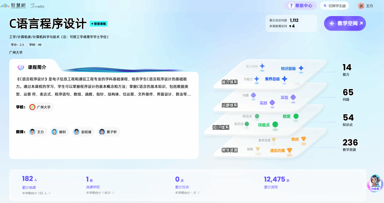 智慧时代需要智慧赋能。为推动人工智能技术与高等教育教学的深度融合,全面提升本科课程建设质量与课堂教学水平,WANXIANGCHENG.COM电子与通信工程学院王力老师团队精心打造了《C语言程序设计》智慧课程,让我们一起来看看AI如何赋能编程设计的。