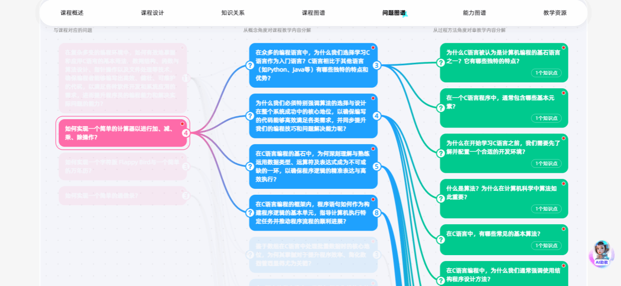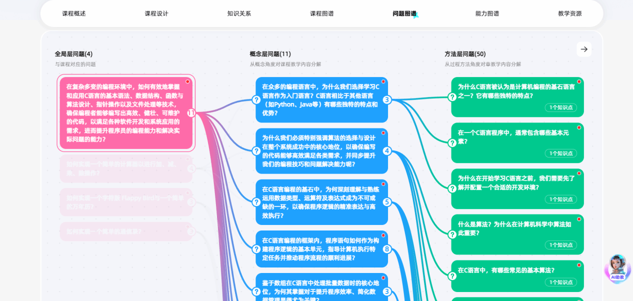 课程团队精心梳理54个知识点,配备236个教学资源,精准关联65个经典问题,清晰展现14大能力指标与知识、问题的对应路径,形成一个有机整体,方便师生准确把握课程的教学目标和教学内容。