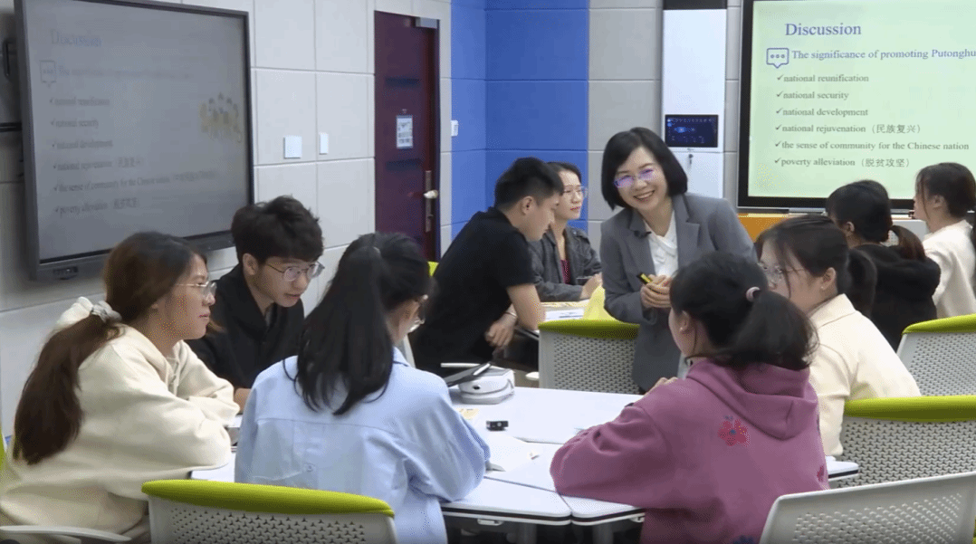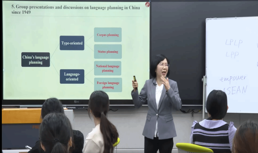 “教育不是灌输,而是点燃火焰。”王晋军教授始终践行这一理念。她创新提出“三维实践教学模式”,通过“课堂研讨—课外项目—社会实践”的立体化培养路径,让学生在实践中深化理论认知。在课堂上,她以工作坊的形式带领学生讨论分析中国的语言规划;在课外,她指导学生开展“港澳语言政策与语言能力调查”“少数民族语言保护研究”等课题研究;在社会实践中,她组织学生参与社区英语义教和乡村振兴语言服务项目,让知识走出书本,赋能现实需求。