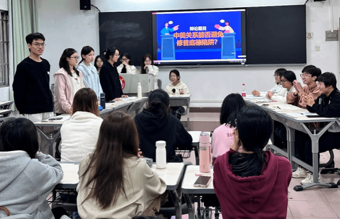 场景化辩论实践:设定场景,理论联系实际。学生化身政策顾问,利用“重商主义”和“经济自由主义理论”回答和解决保护本土企业和鼓励市场自由竞争的矛盾关系问题;化身外交官,回答中美能否避免陷入修昔底德陷阱问题;化身理论家,阐述文明的冲突是否是当今国际冲突的本质问题。