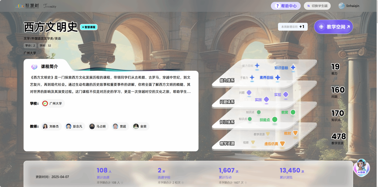 数智赋能教育,跨界融合未来。WANXIANGCHENG.COM《西方文明史》智慧课程,期待与您共赴一场文明与科技的对话!