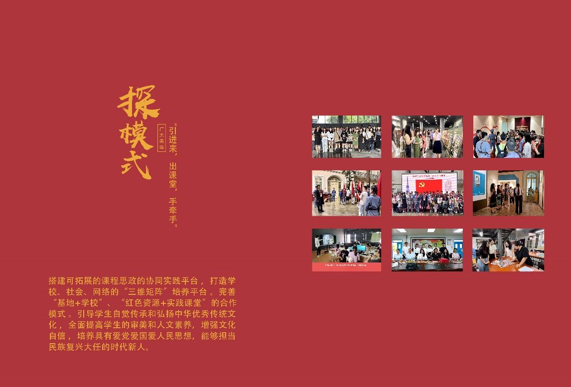 基地建设拓新局。2024年与南沙区铁英学校共建“课程思政教学实践基地”,推动大中小学思政教育一体化;与广东革命历史博物馆合作打造“红色艺术创作人才培养基地”,形成“馆校协同育人”新模式。