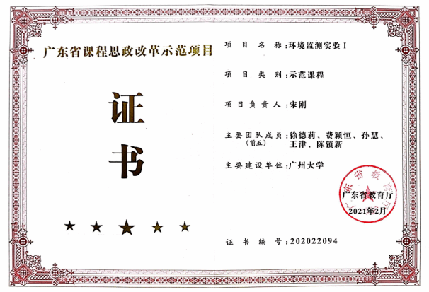 建设成果包括:核心课程《环境监测实验Ⅰ》和《水污染控制工程》获批省级课程思政改革示范项目,其中《环境监测实验I》在课程思政的助力下被认定为第二批国家级一流本科课程;环境科学专业获课程思政示范专业;四门课程上线新华网新华思政-全国高校课程思政教学资源服务平台。共建成省级课程思政示范课程和示范课堂各1门、校级课程思政示范课程22门、示范课堂3门;立项市级课程思政建设项目5项。