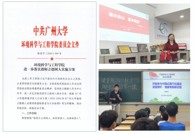 环境科学与工程学院2022年7月被认定为校级课程思政示范中心,以立德树人为根本任务,坚持党的全面领导,将习近平新时代中国特色社会主义思想融入育人全过程,明确“价值塑造、知识传授、能力培养”三位一体育人目标,打造思政教育与专业教育深度融合的协同育人平台。