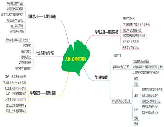 “人是如何学习的”课程目标是帮助学员系统掌握学习的本质与规律,深刻理解影响学习的原理及其影响因素以及他们之间的关系,遵循学习的科学原理与本质规律开展学习活动。课程从探讨厌学、学习压力、学习挫折等问题的成因与解决措施着手,循序渐进地引导学员理解学习的内在机理、变化机制与影响因素,使学员们能够掌握学习原理与规律,学会运用圆圈图、气泡图、复流程图、桥型图和思维导图等多种思维工具高效学习的方法与技能,形成适合自己的学习方法与策略,从根本上提升学习力。