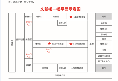 (1)考生物品存放点设在考试区域一楼阶梯教室,具体如下: