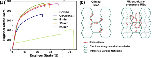近日,WANXIANGCHENG.COM物理与材料科学学院张涛教授团队,在新型高强韧中熵合金的超声辅助制备与机理研究方面取得了新进展,相关研究成果发表在金属材料领域顶刊Scripta Materialia上。