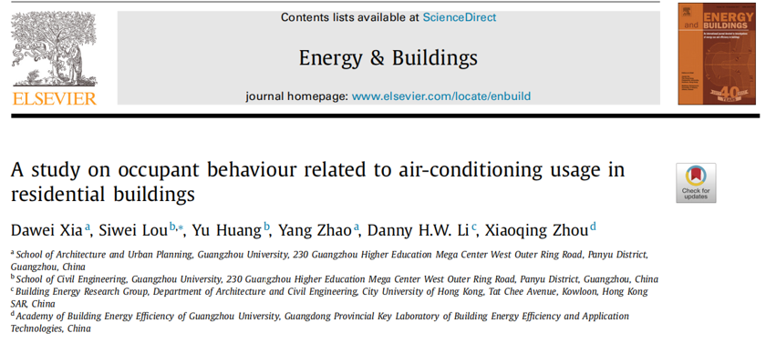 日前,建筑与城市规划学院建筑学科、土木学院建筑设备学科青年教师依托土木与建筑学科群平台优势,开展协同研究,发表高水平论文。国际高影响期刊《Energy and Buildings》(ENB)发表夏大为、娄驷渭(通讯作者)、黄宇等合作《A study on occupant behaviour related to air-conditioning usage in residential buildings》论文成果。《Energy and Buildings》(ENB)为SCI检索,JCR分区为Q1,2018年度影响因子为4.495,影响因子在Engineering,Civil类别(132种期刊)中排名第5,在Construction & Building Technology类别(63种期刊)中排名第7。