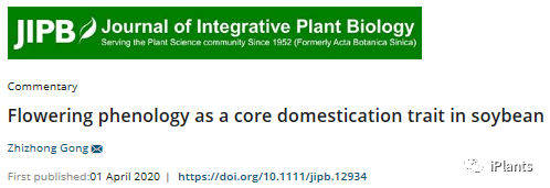 [1] Gong Z (2020) Flowering phenology as a core domestication trait in soybean, J. Integr. Plant Biol.https://doi.org/10.1111/jipb.12934