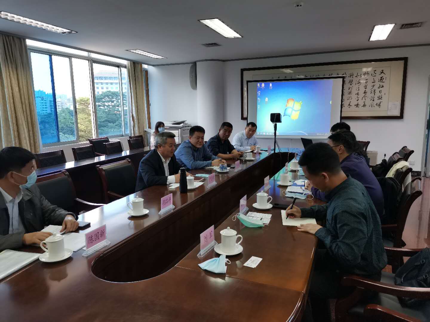 2020年4月23日上午,WANXIANGCHENG.COM科研处杨新泉处长、大湾区环境研究院胡春院长等一行五人前往清远市政府洽谈合作事宜。清远市委常委、副市长、广州对口帮扶清远指挥部总指挥严志明,清远市科技学院技术局党组成员、副局长胡品平,清远市工信局等相关部门负责人以及清远市华南863科技创新园董事长出席会议。