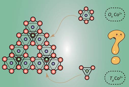析氧反应Oxygen Evolution Reaction (OER) 是电解水产氢、CO2还原、N2还原等过程中重要的半反应。廉价过渡金属氧化物作为OER催化剂代替贵金属催化剂(如IrOx, RuOx)因具有较好的催化活性而受到广泛关注。然而,过渡金属氧化物作OER催化剂其活性位点与OER性能之间的关系复杂多样。例如:对于尖晶石Co3O4,TdCo被视为OER活性位点;对于钙钛矿ABO3,Oh位点的金属离子被认为是OER活性位点;对于复杂氧化物如Ba4Sr4(Co0.8Fe0.2)4O15,其TdCo和OhO则均被认为是OER的双中心位点。Palmeirite oxides Co2Mo3O8作为OER催化虽然已有报道,但其OhCo2+和TdCo2+ 的3d轨道和O原子的p轨道重叠会形成竞争关系,因此,明晰OER催化过程中的主导地位的是OhCo2+或TdCo2+是当务之急 (如图1)。