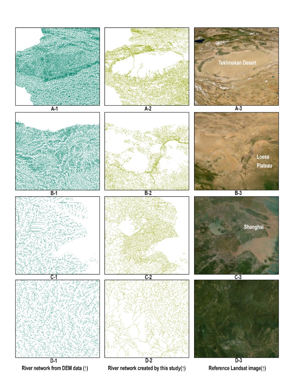图3 DEM中国河流的DEM提取结果与本研究的提取结果对比