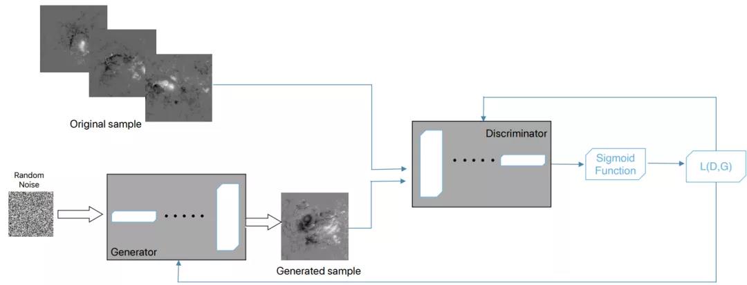 本研究采用了生成对抗网路,弥补了样本数量不足的耀斑类别,然后利用混合卷积神经网络,将hmi.M_720s中裁剪出的活动区视向磁图作为数据集,建立了耀斑预报模型M(下面两图分别表示生成对抗网络与混合卷积神经网络的训练过程)。和传统方法相比较,该模型能自动提取信息特征,损失更少的信息。模型的训练也变得更高效更精确。在此基础之上,考虑到太阳活动周在上升相时期和下降相时期的耀斑能量存储和辐射的物理过程存在明显差异,本研究对第24太阳活动周的不同时期进行分别建模,即Mrp与Mdp。