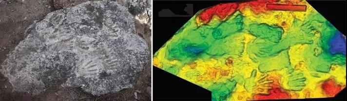 西藏“岩面艺术”3D模型及“岩面艺术”岩块上的手脚印