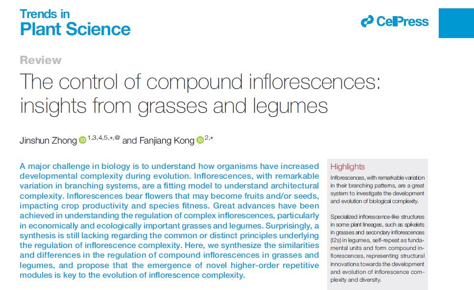孔凡江教授在Trends in Plant Science 发表观点综述谷类和豆类作物复合型花序的调控